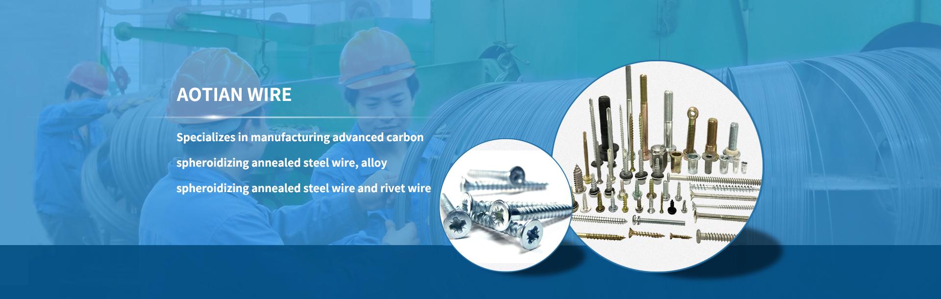 无锡翱天钢丝制品有限公司(原无锡市华天标准件拉丝有限公司)成立于2000年,公司专业生产冷镦级碳钢球化钢丝、合金钢球化钢丝、铆钉钢丝等高级钢丝制品,设计产能40000吨/年。公司的钢丝产品广泛应用于汽车紧固件、航空紧固件、船舶紧固件、精密电子螺丝、高强度螺栓、螺母、自攻自钻螺丝及异型紧固件的生产制造。